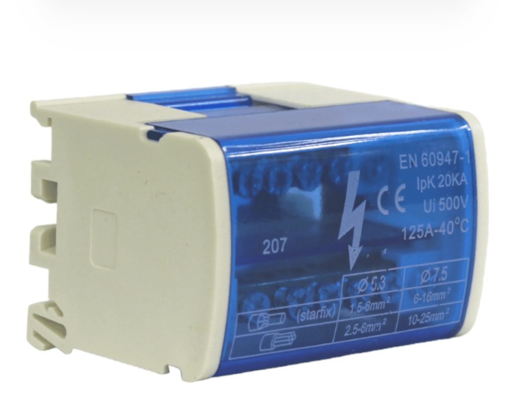 Este repartidor bipolar es una excelente solución para la derivación de circuitos en tableros de control y potencia.